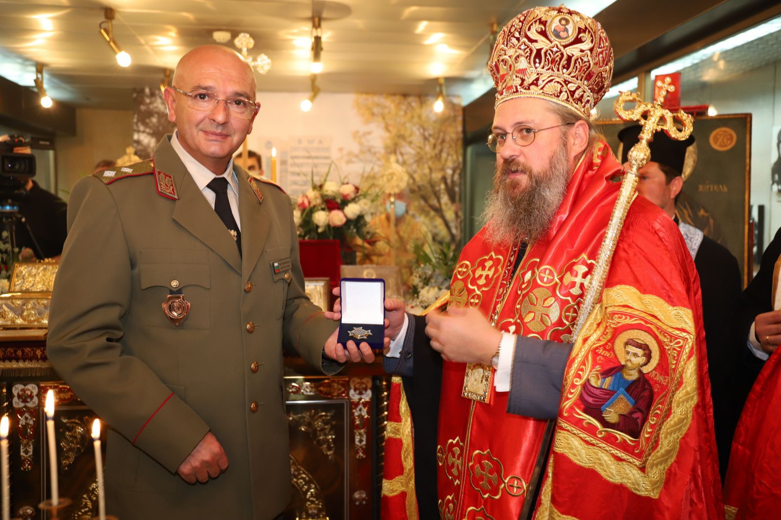 Той връчи на епископ Поликарп благодарствена грамота, предназначена за патриарх Неофит – за непрестанното му молитвено първосветителско застъпничество и грижите за трудещите се и служещите във ВМА, както и благодарствена грамота на епископ Поликарп - за проявената духовна грижа и предоставяне на множество светини за духовно благословение на трудещите се във ВМА.