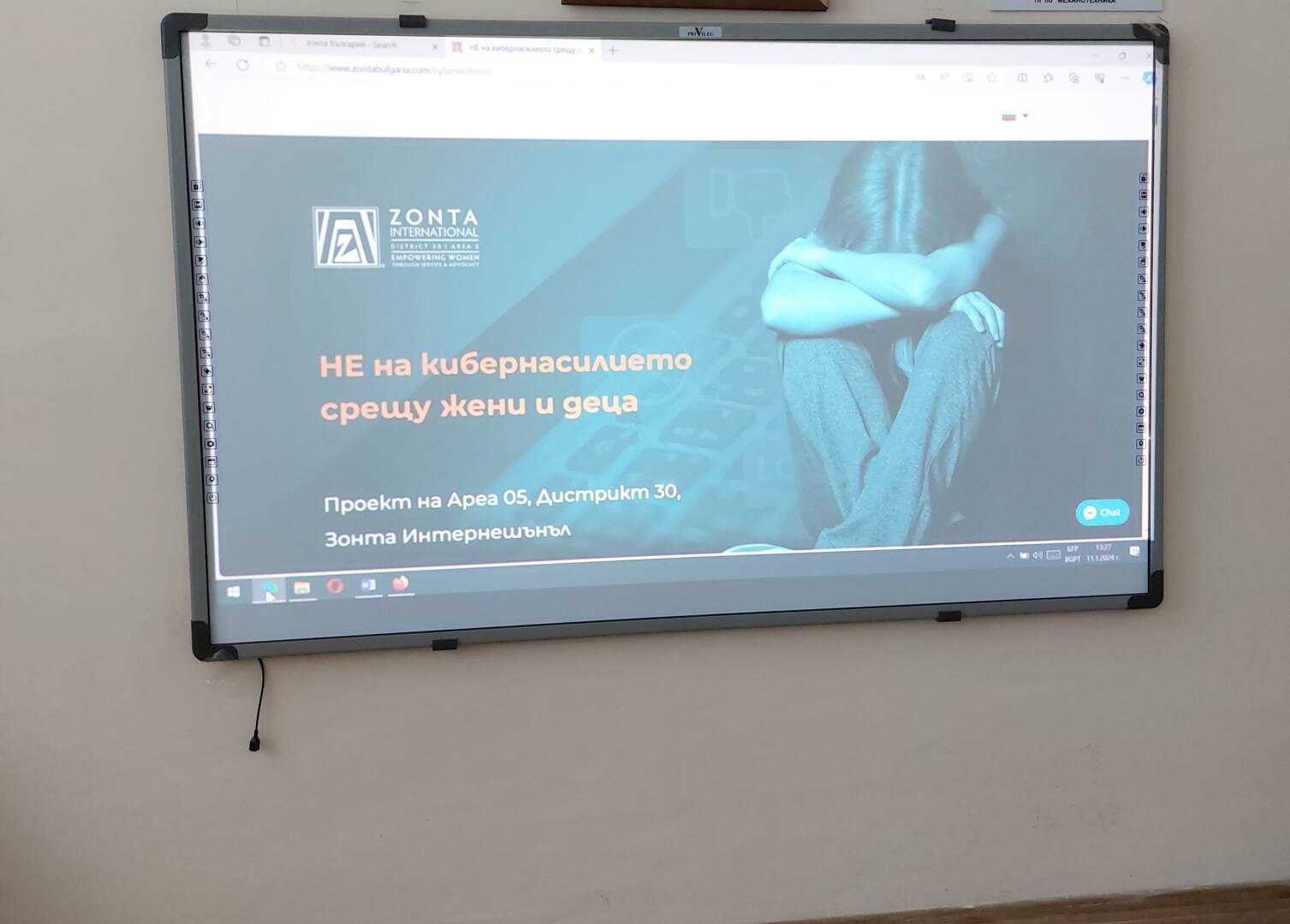 Ученици от ХІ клас на ПГЕЕ „Апостол Арнаудов“ участваха днес в среща с представителите на „Зонта – клуб Русе“ под надслов: „ Не на кибертормоза над жени и деца“.